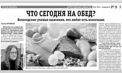 Областная газета «Аргументы и факты» об исследовании Вологодского научного центра РАН на тему характера потребления продуктов питания жителями Вологодской области