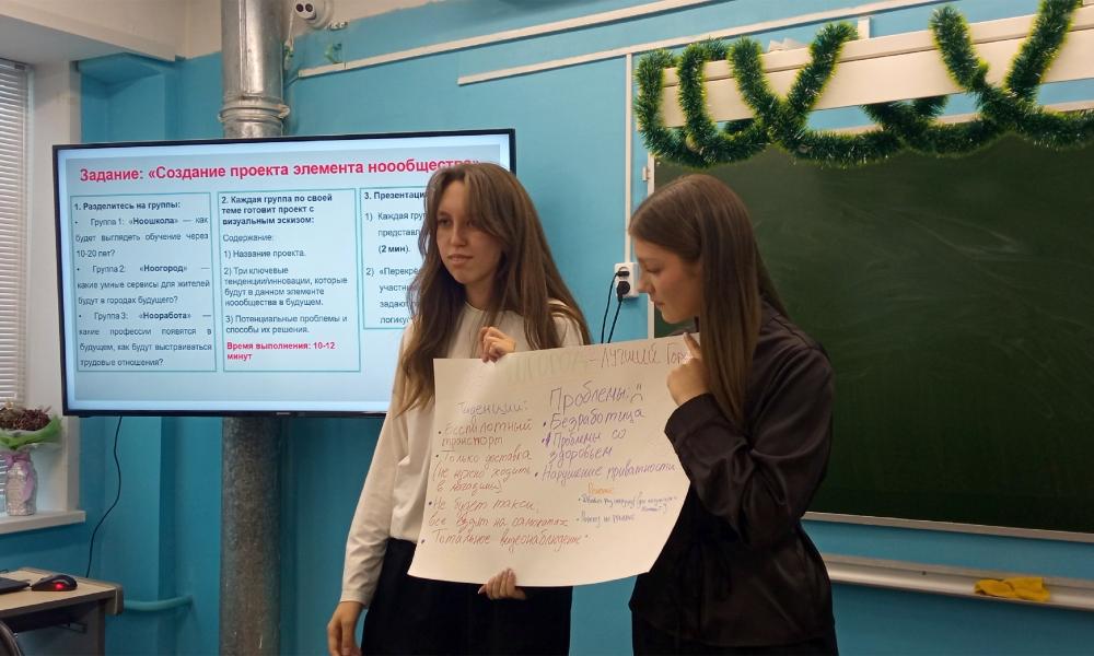 Завершилась встреча оживленной дискуссией. Школьники обсудили необратимые изменения в современном обществе, базовые потребности человека будущего, реалистичность предложенных идей, ключевые навыки для «ноочеловека» и возможные, но недооцененные риски.
