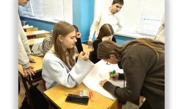 Практическая часть занятия включала работу школьников в группах, каждой из которых предстояло подготовить проект по одному из элементов ноообщества: