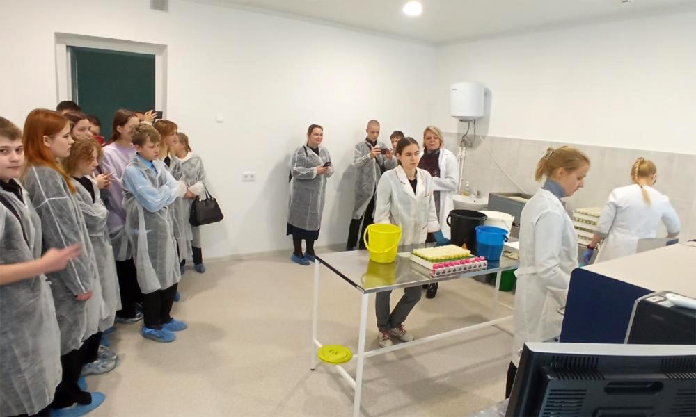 В ходе экскурсии директор СЗНИИМЛПХ Мазилов Е.А. и сотрудники лабораторий Селимян М.О., Фоменко П.А. и Чижова Т. В. познакомили школьников с лабораториями подразделения по анализу крови крупного рогатого скота, коровьего молока и качества кормов. Ребята узнали, почему рацион питания животных должен быть разнообразным, зачем и как делается анализ крови коровы, что он показывает и чем отличается от анализа крови человека; как на основе исследования ДНК можно изменить качество и характеристики молочной продукции. Обучающимся представили уникальное для вологодского региона оборудование, позволяющее работать с выделением и изучением ДНК не только сельскохозяйственных животных, но даже растений.